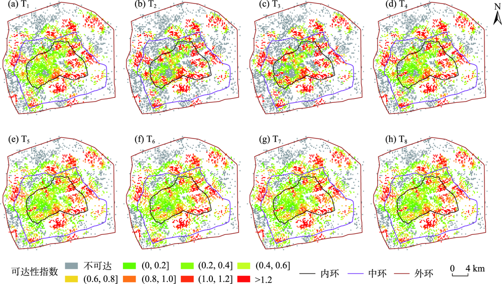 | 图6 百年一遇暴雨内涝情景下晚高峰时段消防服务可达性空间分布 |