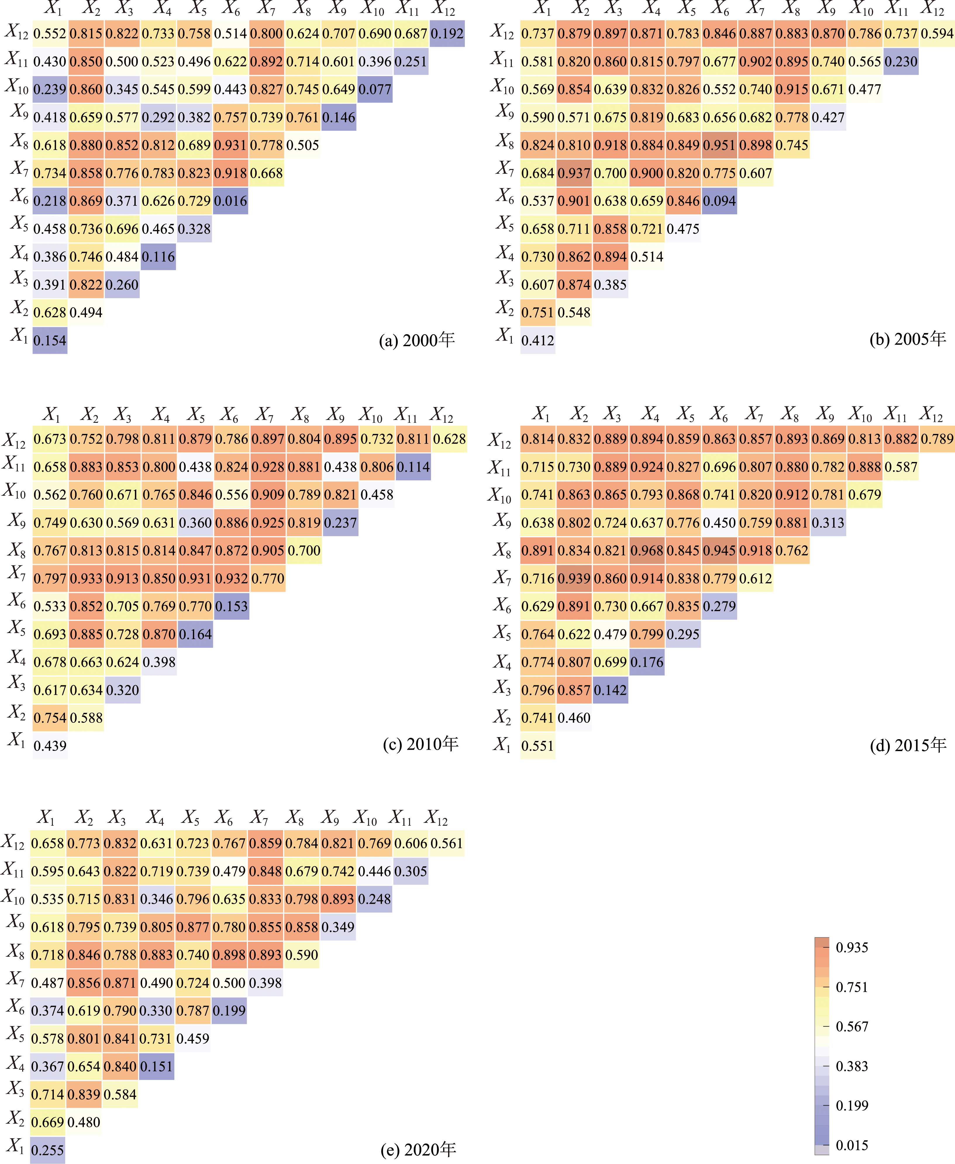| 图7 中国城乡融合水平驱动因素交互探测结果 |